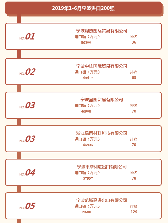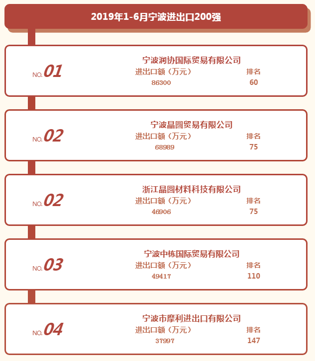 昨日,宁波商务局公布了2019年宁波外贸进出口、进口、出口前200强企业榜单。在这份榜单中,是否有我们熟悉的塑城企业呢?一起看过来!